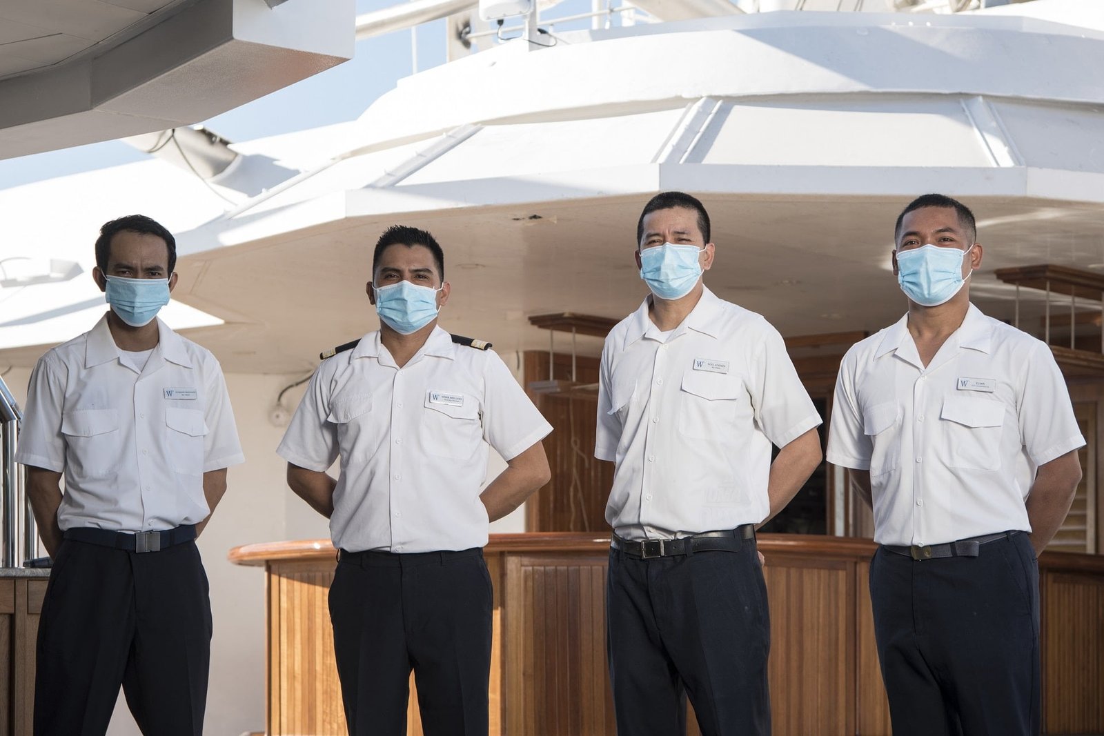 • Maskenpflicht. Obligatorisches Tragen von Masken von allen Passagieren und Besatzungsmitgliedern an Bord und während der Ausflüge, wenn der physische Abstand nicht eingehalten werden kann.